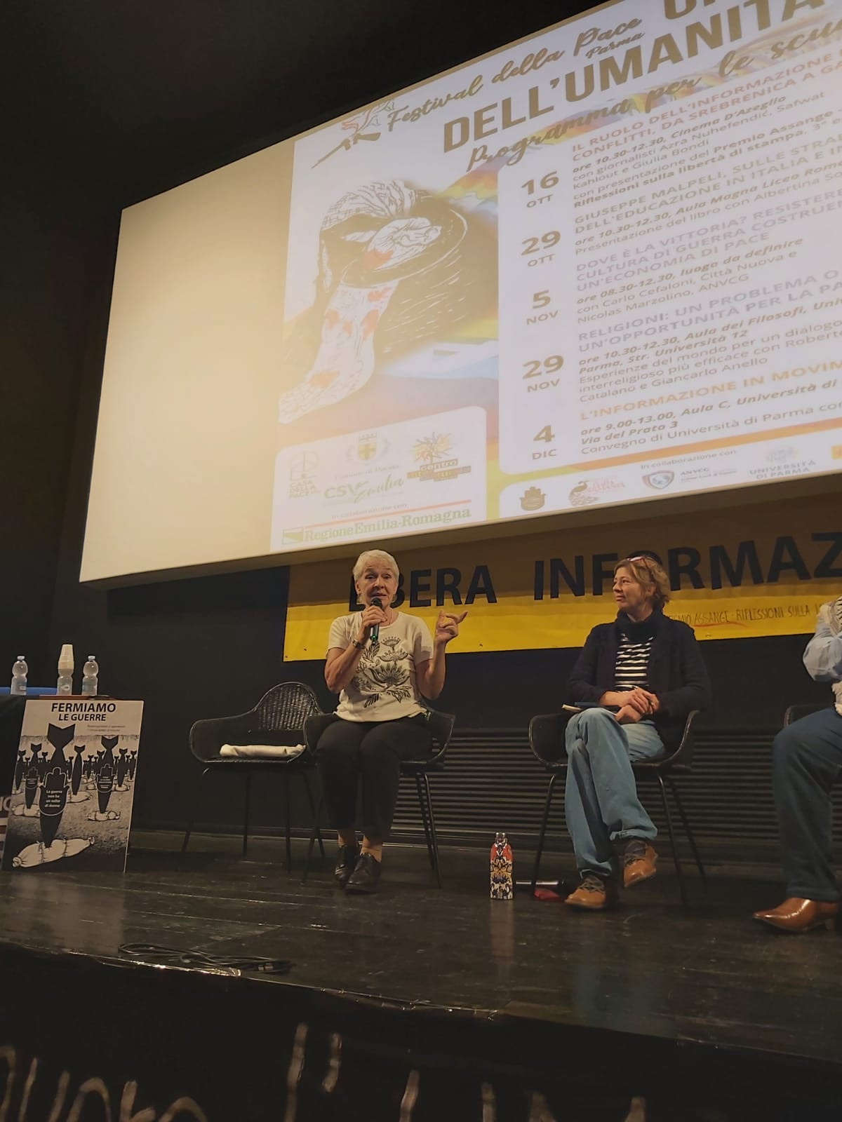 Giovedì 16 ottobre presso la Sala Conferenza dei Missionari Saveriani sono stati presenti Azra Nuhefendić, giornalista e scrittrice di Sarajevo che dal 1995 vive in Italia a Trieste dove lavora per varie testate tra cui “Osservatorio Balcani e Caucaso” (OBC), “Sud”, “Domani”, “La nuova ecologia” e Safwat Kahlout, giornalista Palestinese di Al –Jazeera che ha lavorato per ANSA e come producer dalla Palestina e di Gaza per media internazionali. Vive in Italia dall’aprile 2024 in fuga da Gaza con moglie e i suoi 7 figli. L’incontro è stato moderato da Marco Deriu, professore associato dell'Università di Parma, Presidente Corso Laurea Magistrale in Giornalismo, cultura editoriale e comunicazione multimediale.