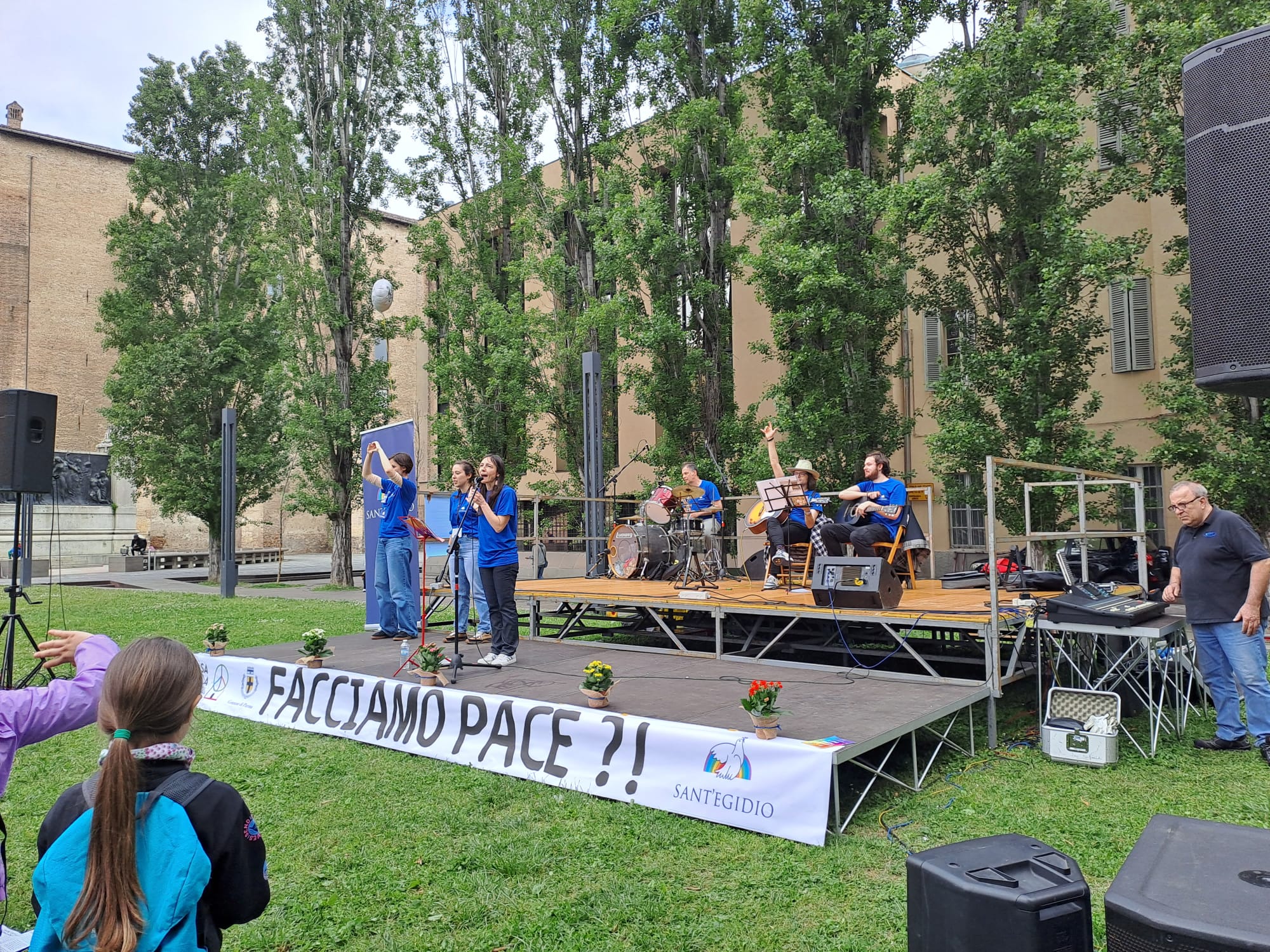 Ad animare l’evento hanno contribuito: il coro e l’orchestra della scuola secondaria di primo grado I.C. Ferrari, il gruppo vocale OltreCoro, la cooperativa sociale École, il gruppo Donne in Nero Parma, Agesci – Settore Giustizia, Pace e Nonviolenza.