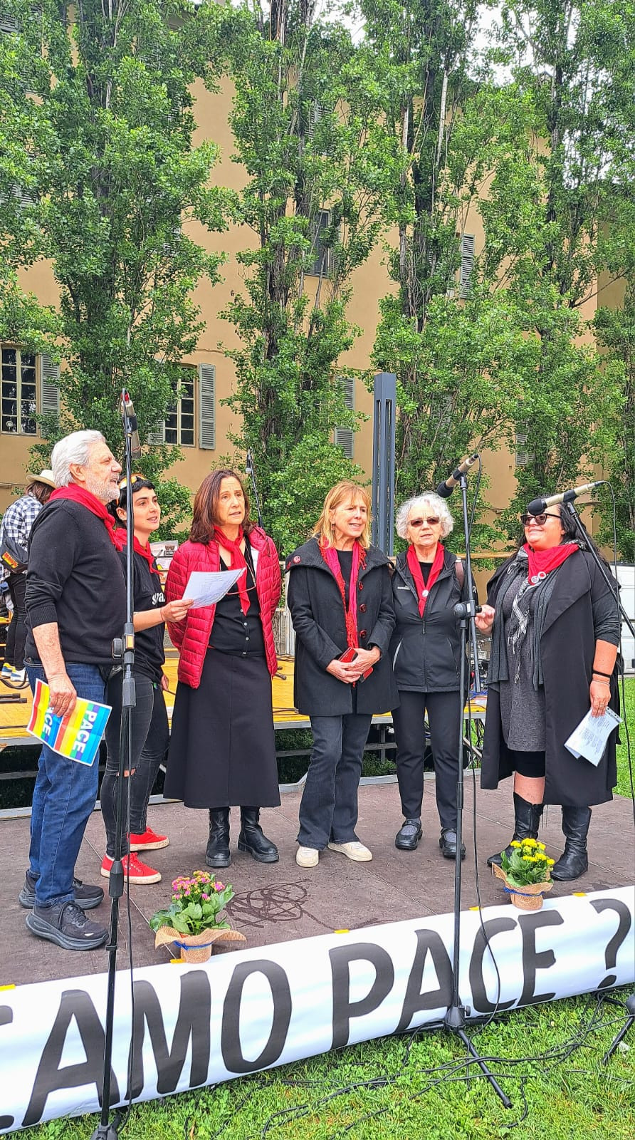 Ad animare l’evento hanno contribuito: il coro e l’orchestra della scuola secondaria di primo grado I.C. Ferrari, il gruppo vocale OltreCoro, la cooperativa sociale École, il gruppo Donne in Nero Parma, Agesci – Settore Giustizia, Pace e Nonviolenza.