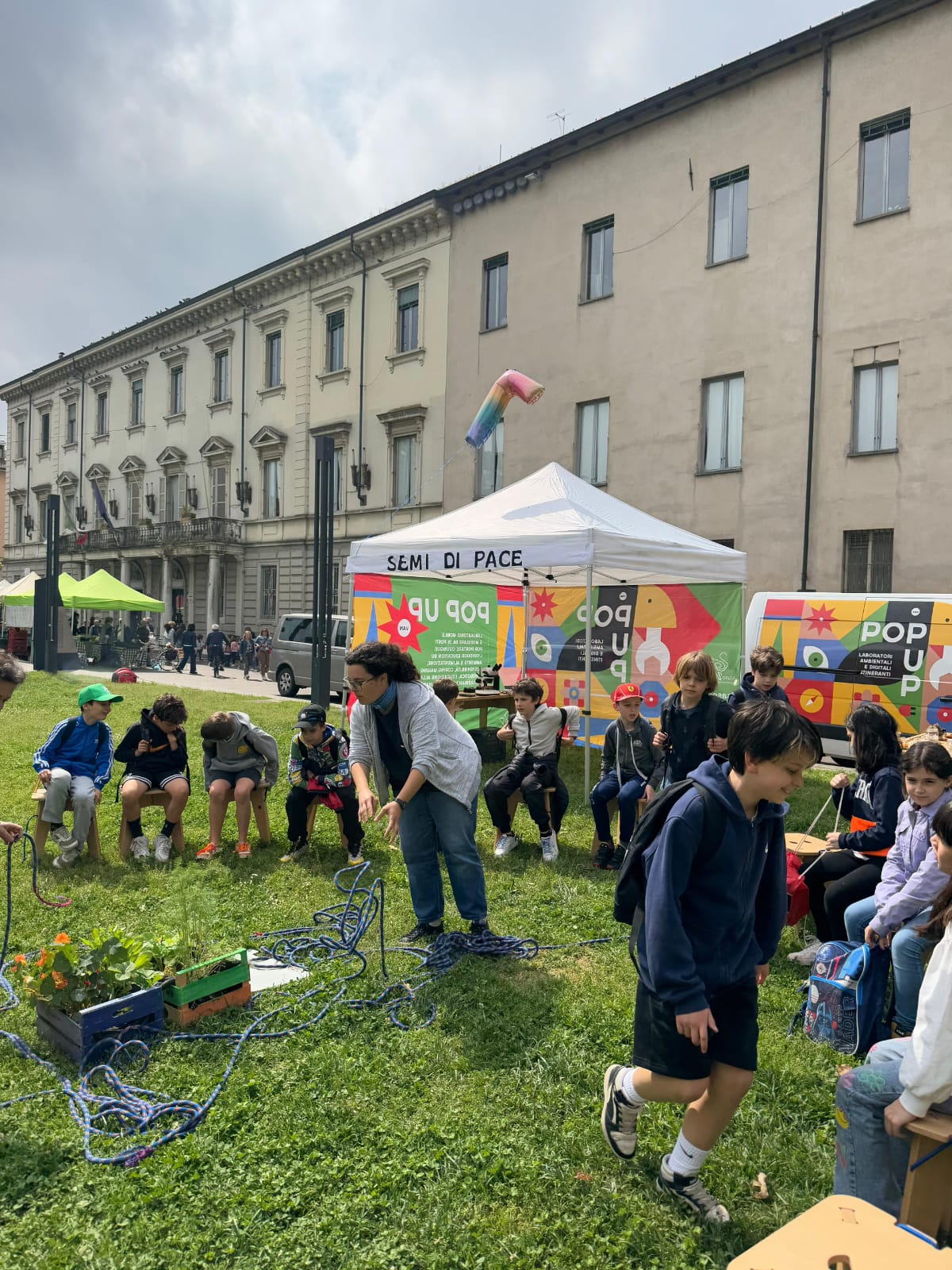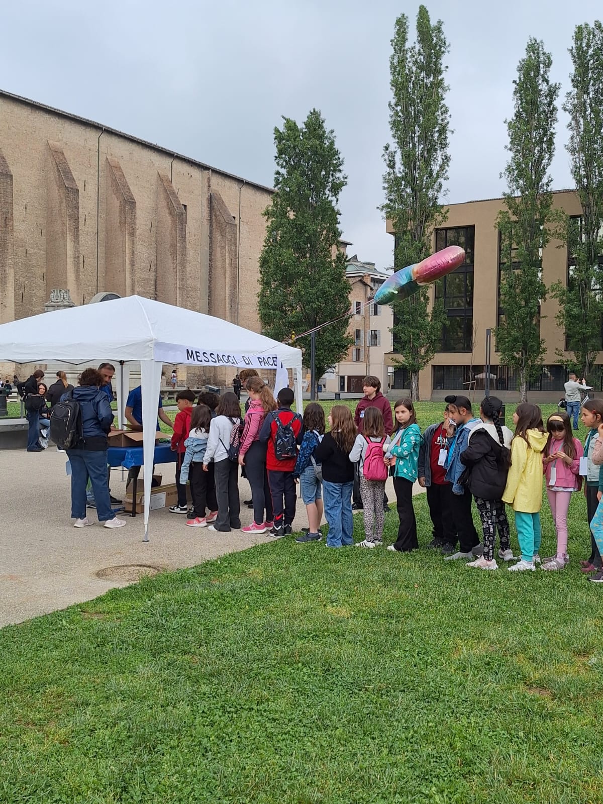 Martedì 13 maggio, in Piazzale della Pace, oltre 20 classi si sono riunite per l’evento “Facciamo Pace?!”, una mattinata di attività e laboratori dedicati alla riflessione sul valore della pace. A guidare i partecipanti i “Tutor della Pace”: giovani della Comunità di Sant’Egidio e studenti del Liceo Scientifico G. Ulivi.